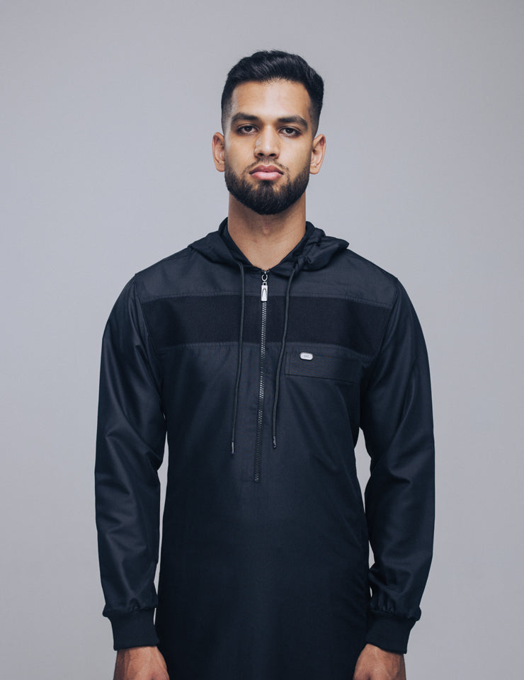 Fit: Relaxed and modern for a contemporary silhouette. Elevate your wardrobe with the Drift Hoody Thobe—where tradition drifts into the future.