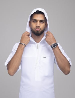 Fit: Relaxed and modern for a contemporary silhouette. Elevate your wardrobe with the Drift Hoody Thobe—where tradition drifts into the future.