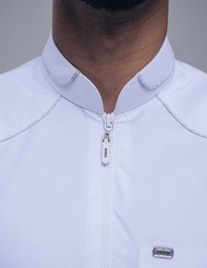 • Mandarin Collar – A sleek, modern collar with subtle design details for a refined urban edge.