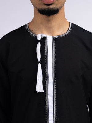 Whether you're honoring tradition or making a fashion statement, this Black Omani Thobe is the perfect choice. Add a touch of Dubai's luxury to your wardrobe today!